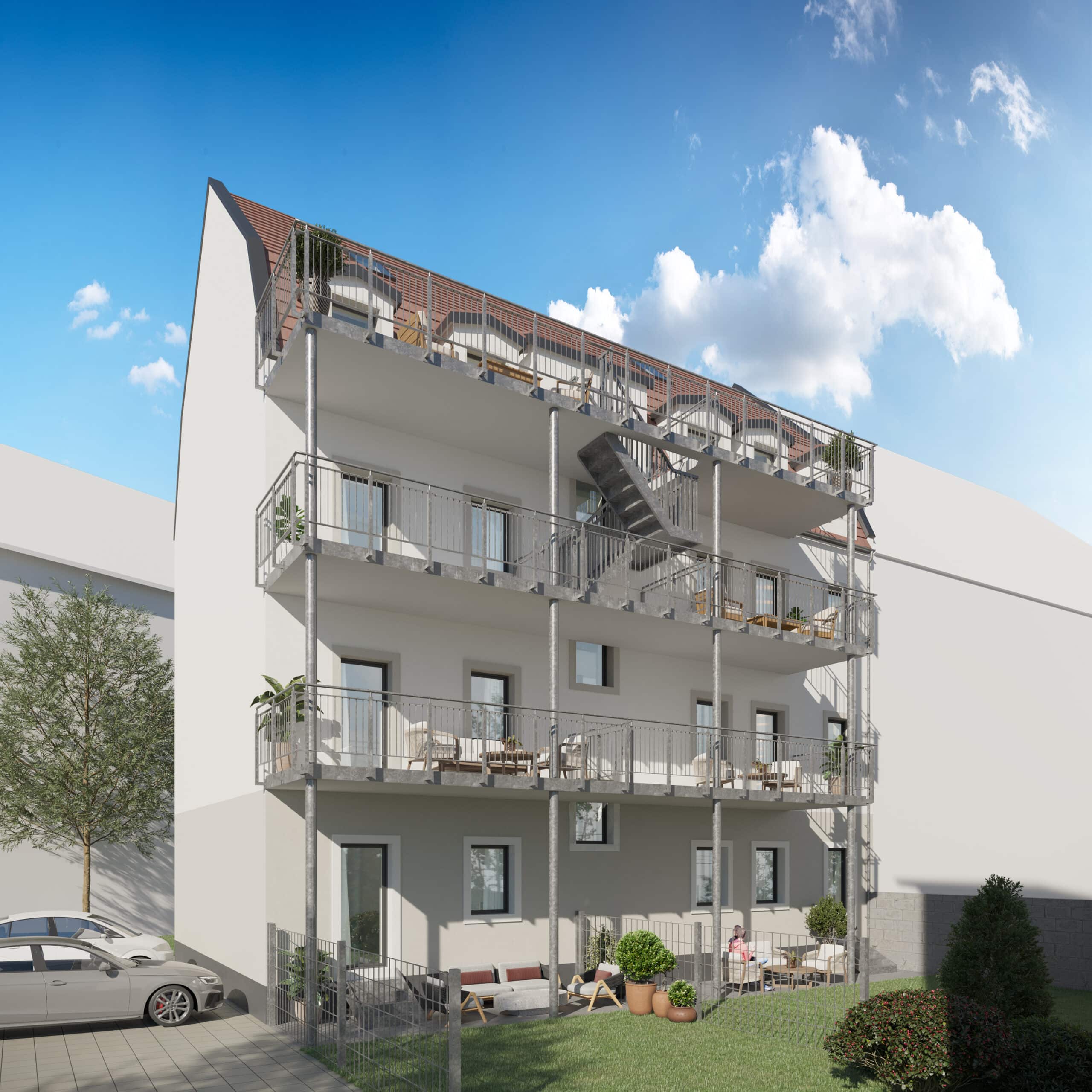 Es handelt sich um kernsanierte Eigentumswohnungen mit moderner Ausstattung, die im Rahmen einer Komplettsanierung auf Neubauniveau gebracht werden – jeweils mit Balkon oder Terrasse.